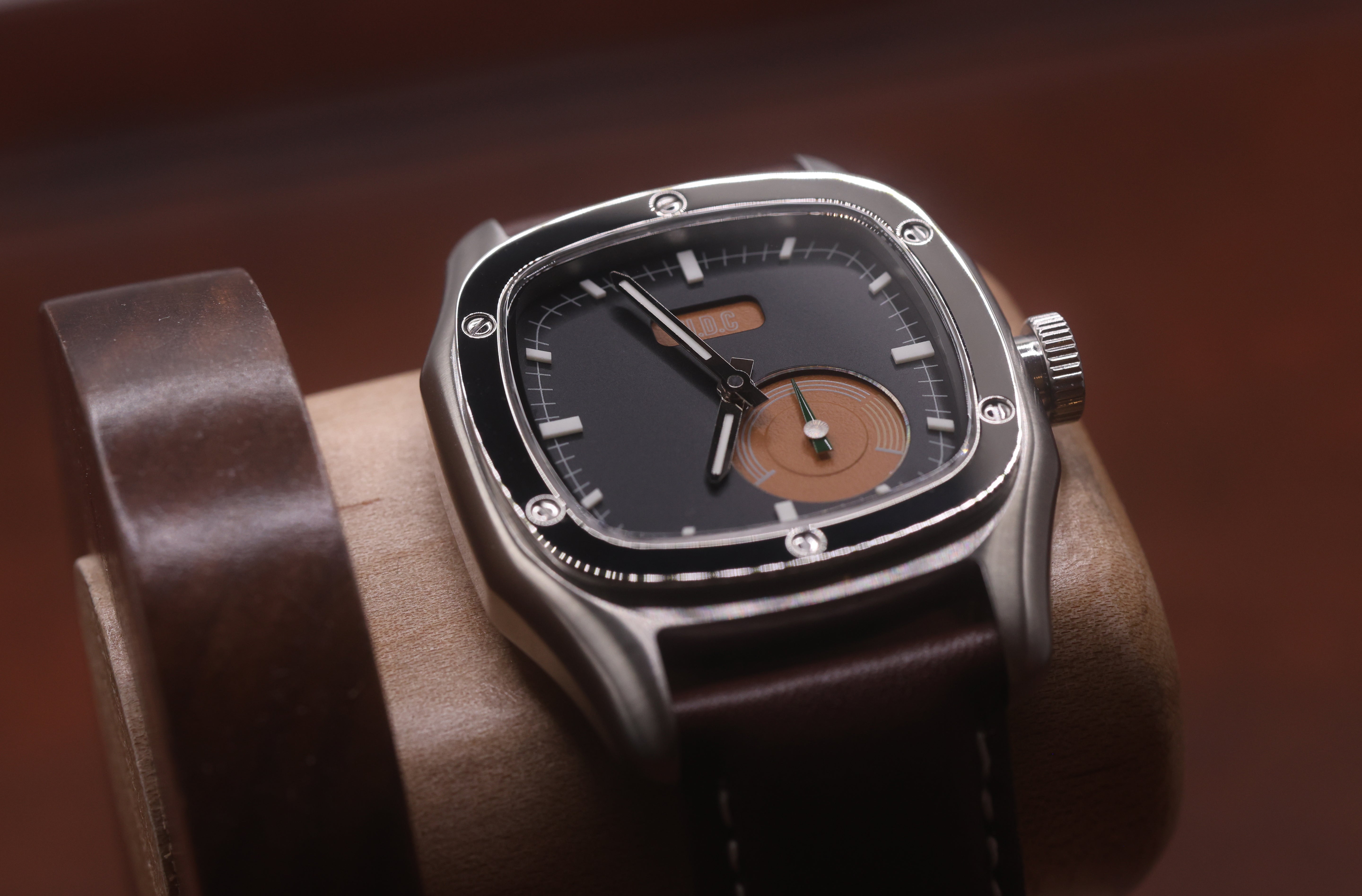 What's more common on a classic car than chrome accents? The polished bezel provides contrast and depth against the brush case and further conveys classic car design language. The six screws around the bezel ensure the bezel is solidly secured to the case and mimic the exposed screws common to classic sport cars.