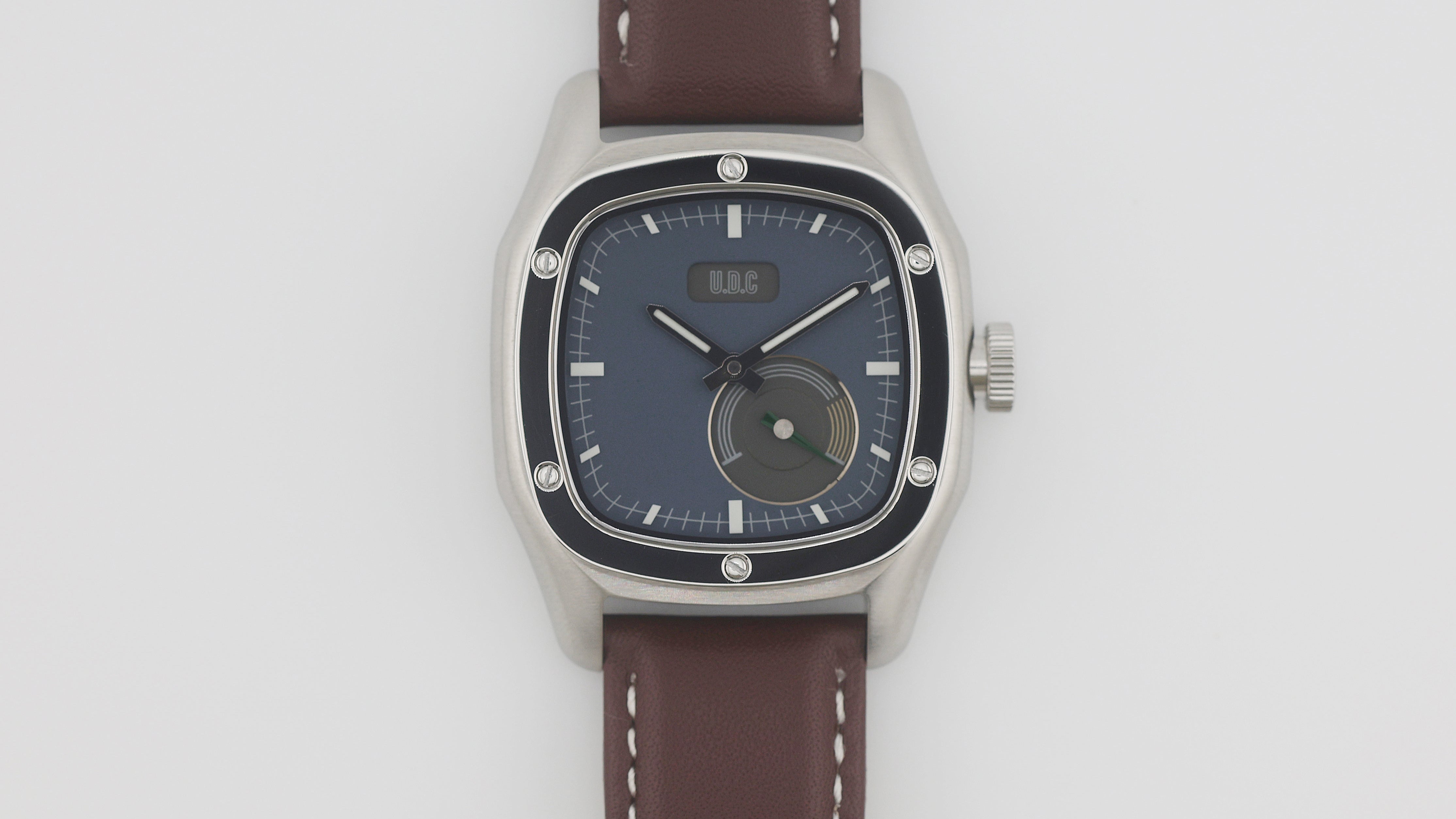 Our watch features a small sub-dial with running second hands. We specifically designed the watch with the sub-dial to resemble a classic car cluster with all their gauges. The small second sub-dial is modeled after a tachometer with a green running hand and yellow "high RPM" range.