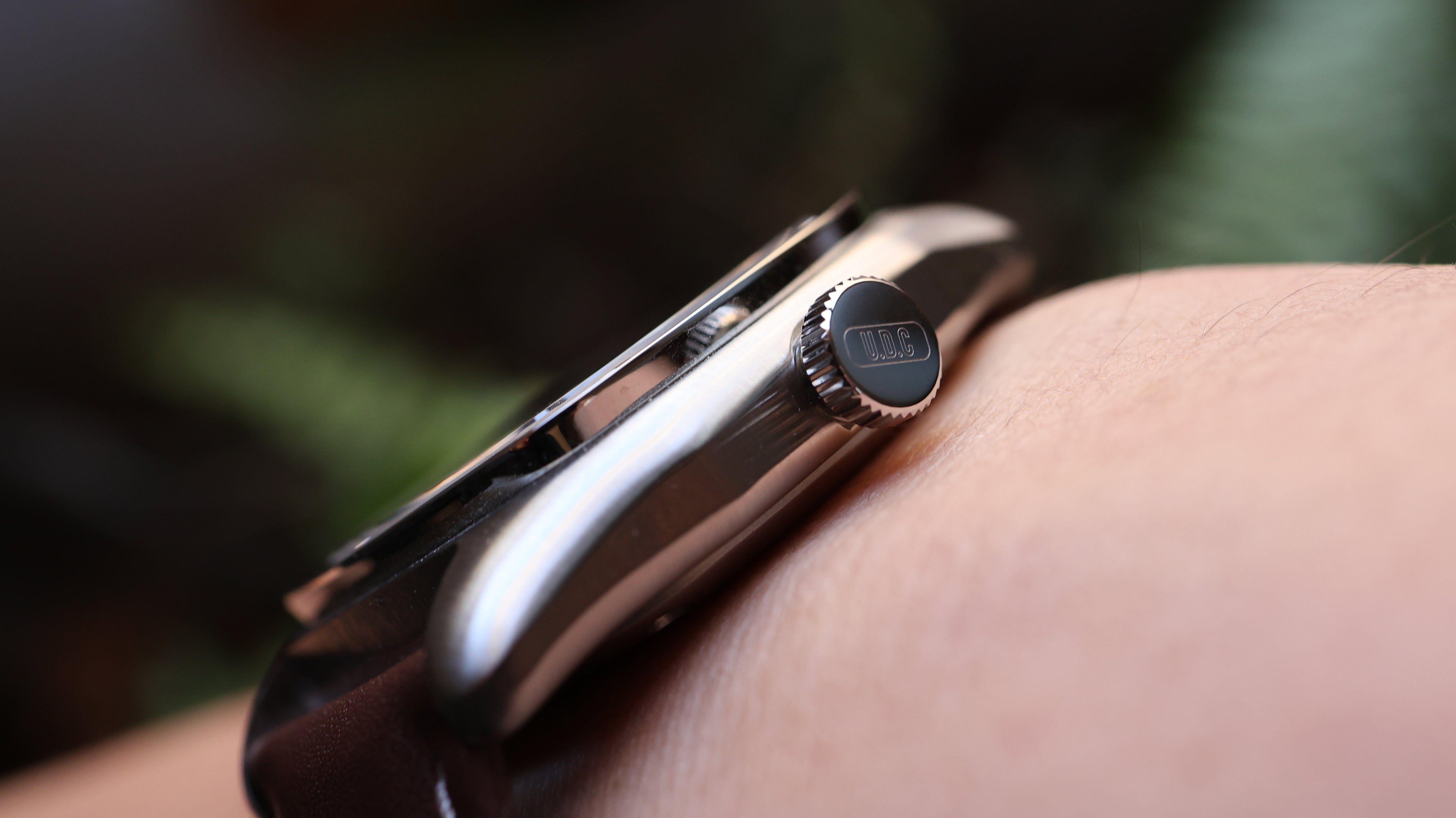 What's more common on a classic car than chrome accents? The polished bezel provides contrast and depth against the brush case and further conveys classic car design language. The six screws around the bezel ensure the bezel is solidly secured to the case and mimic the exposed screws common to classic sport cars.